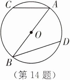 14.(2024·陕西中考)如图,AB为$\odot O$的直径,$\overset{\frown}{AC}= \overset{\frown}{AD}$,$\angle A= 53^{\circ}$,则$\angle B$的度数是______.