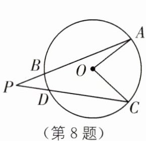 8.(2025·江苏宿迁宿城区期中)如图,AB,CD 是$\odot O$的弦,延长 AB,CD 相交于点 P. 已知$\angle P= 30^{\circ }$,$\angle AOC= 80^{\circ }$,则$\widehat {BD}$的度数是______