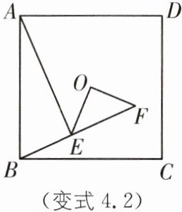 变式4.2 (2025·山东日照东港区北京路中学期中)如图,正方形ABCD的边长为4,点E是平面内一点,连结AE,BE,且$\angle AEB= 90^\circ$,点O是正方形ABCD的中心,连结EO,线段EO绕点O逆时针旋转$90^\circ$得到线段FO,连结EF,求EF的最大值.