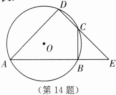 14. 如图,四边形 ABCD 是$\odot O$的内接四边形,延长 DC,AB 交于点 E,且$BE= BC$.