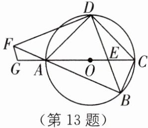 13.(2024·福州一模)如图,四边形 ABCD 内接于$\odot O$,对角线 AC 是$\odot O$的直径,BD 平分$\angle ABC$,BD 交 AC 于点 E,过点 D 作$DF\perp DB$,DF 交 BA 延长线于点 F.