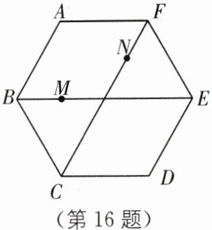 16. 如图,在边长为$6\sqrt {3}$的正六边形 ABCDEF 中,连结 BE,CF,其中点 M,N 分别为 BE 和 CF 上的动点. 若以 M,N,D 为顶点的三角形是等边三角形,且边长为整数,则该等边三角形的边长为 _ .