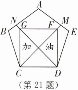 21.(2024·青岛中考)为筹备运动会,小松制作了如图所示的宣传牌,在正五边形 ABCDE 和正方形 CDFG 中,CF,DG 的延长线分别交 AE,AB 于点 M,N,则$∠FME$的度数是(