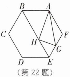 22.(2024·绵阳中考)如图,在边长为 2 的正六边形 ABCDEF 中,连结 BE,点 H 在 BE 上运动,点 G 为 EF 的中点,当$△AGH$的周长最小时,$AH+GH= ( ).$