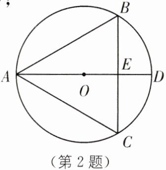 2. 如图,$\odot O$是三角形 ABC 的外接圆,AD 是$\odot O$的直径,$AD\perp BC$于点 E.