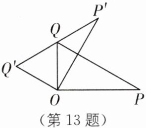 13. 如图,在$ \text{Rt}\triangle POQ $中,$ \angle POQ= 90^{\circ} $,$ \angle P= 30^{\circ} $,$ PQ= 6 $,将$ \text{Rt}\triangle POQ 绕点 O 逆时针旋转得到 \text{Rt}\triangle P'OQ' $,点$ Q 恰好落在斜边 P'Q' $上,则点$ P $经过的路径长为