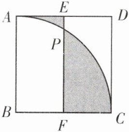 【例】如图,在边长为2的正方形ABCD中,以点B为圆心、AB为半径构造扇形ABC,点P是弧$\overset{\frown}{AC}$上一动点,过点P作EF⊥BC,分别交AD,BC于点E,F.记AE,PE,$\overset{\frown}{AP}构成的封闭区域为S_{1}$,PF,FC,$\overset{\frown}{PC}构成的封闭区域为S_{2}$,当$S_{1}与S_{2}$面积相等时,BF的长为(