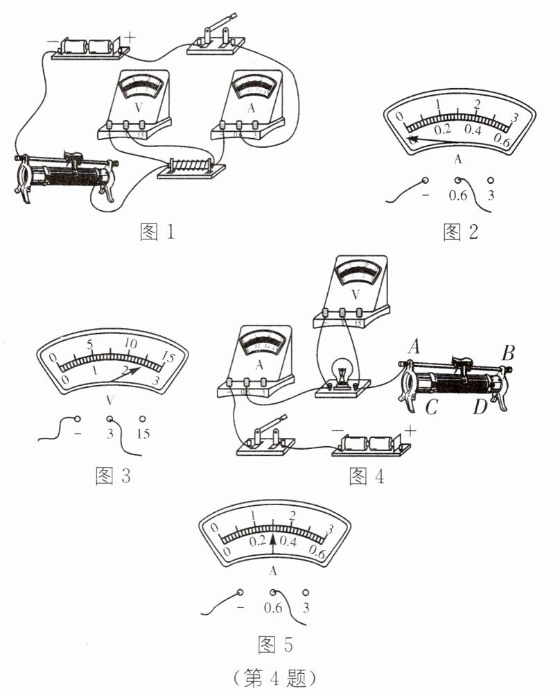 ①请你用笔画线代替导线,在图 4 中把电路连接完整(滑片向右移动,灯泡变亮)。