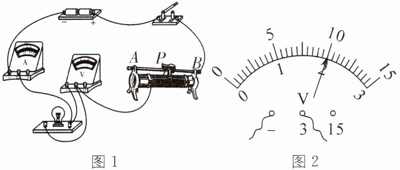 (1)闭合开关,小柯将滑动变阻器的滑片移到某一位置后,电压表示数如图 2 所示,此时电压大小为