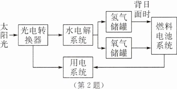 C [解析]光电转换器可将光能转化为电能,A正确;燃料电池系统将化学能转化为电能,B正确;在化学反应中,各反应物遵循质量守恒定律,氢元素在循环过程中总质量不会减少,C错误;由转化图可知,该系统中水既可分解也可生成,是可以回收并循环使用的,D正确。