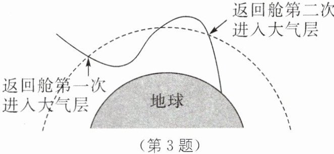 3. (2024·嘉兴一模)我国探月工程“嫦娥五号”返回器采用“打水漂”的方式返回,返回轨道如图所示。通过多次进入大气层成功降低速度,避免了返回器燃烧破损的风险。下列说法错误的是(