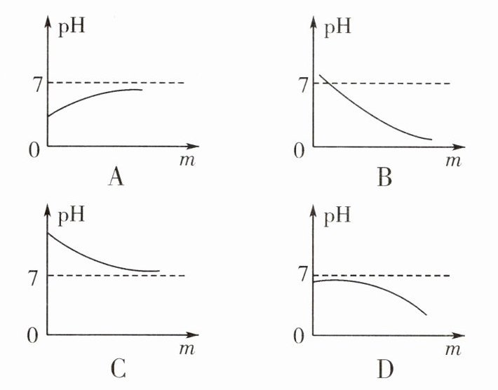 6. 有些滩涂地区的土壤被称为“盐碱地”,当地农民常采用引进内河淡水浸泡再排水的方法改良土壤。若以土壤pH为纵坐标,以浸泡的次数m为横坐标,下列能正确表示土壤pH变化的是(