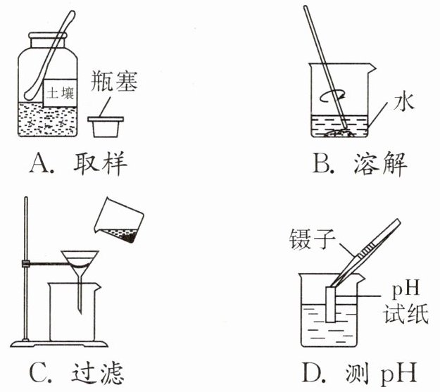 (1)取土壤样品,加入适量蒸馏水,搅拌,溶解,静置,用玻璃棒蘸取上层清液滴在pH试纸上,将试纸呈现的颜色与标准比色卡比色,读出相应的pH