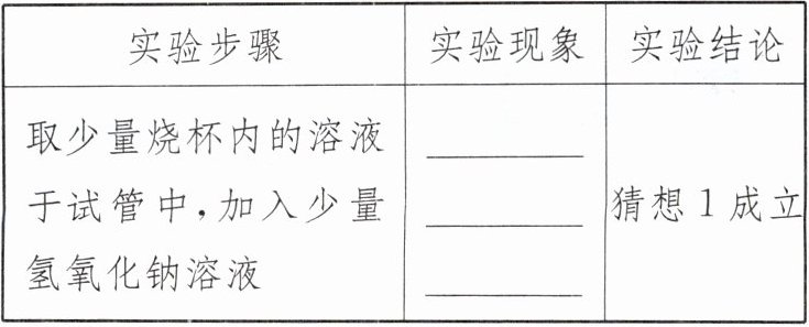 |取少量烧杯内的溶液于试管中,加入少量氢氧化钠溶液|