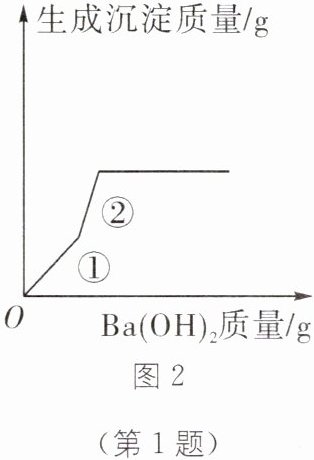 1.(诸暨开放双语实验学校跟踪培养对象选拔)将两份质量分数相同的${Ba(OH)_{2}}溶液分别逐滴加入混有少量稀硝酸的{CuSO_{4}}溶液和混有少量稀硫酸的{CuSO_{4}}$溶液中,所得沉淀的质量与加入的${Ba(OH)_{2}}$溶液的质量变化有图1、2两种情况,则下列有关说法不正确的是(