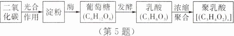 5. (2025·温州苍南县期中)目前,免拆型手术缝合线广泛应用于手术中,它是用新型生物降解材料——聚乳酸$[(C_{3}H_{4}O_{2})_{n}]$制作而成。聚乳酸可以通过以下路径制取: