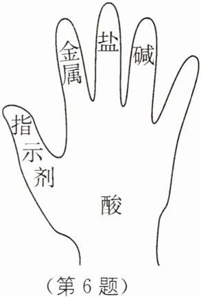 6. 如图是某同学在复习科学时建构酸通性的“手掌图”,其中五个手指表示能与酸发生化学反应的五类物质。
