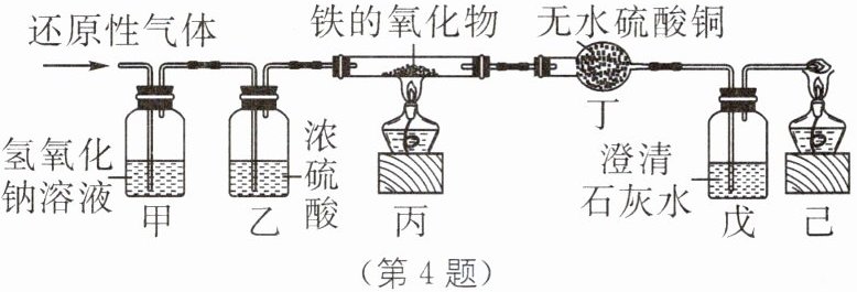 4. 用含有二氧化碳和水蒸气两种杂质的某种还原性气体(氢气和一氧化碳中的一种)测定某种铁的氧化物(${Fe_{x}O_{y}}$)的组成,实验装置如图所示。据图回答下列问题:
