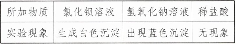 )。|所加物质|氯化钡溶液|氢氧化钠溶液|稀盐酸|