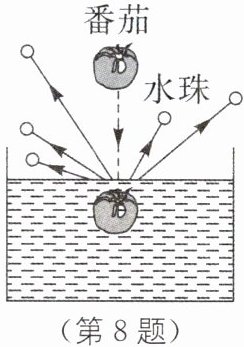 8. 一颗番茄从手中由静止开始下落,撞击水面时溅起许多水珠(如图所示),同时番茄仍有较大速度并继续下沉。若不计一切机械能损耗,番茄从开始下落至刚好浸没时减少的势能(