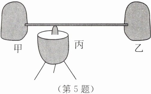5. "推枣磨"是古代的一种平衡游戏,将甲、乙鲜枣用粗细均匀的细竹签串在一起后,放在去除部分枣尖而露出枣核的丙鲜枣上,使之保持静止,如图所示。据图可推测出(