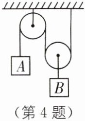 4. 把质量相等的 A、B 两物体挂在如图所示的滑轮组下面,不计绳重、滑轮重和摩擦,放手后(