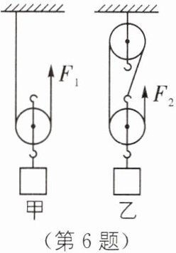 6. (2024·杭州西湖区月考)如图所示的甲、乙两套装置,每个滑轮的质量均相等且绳子重力和摩擦力不计。用它们分别将重为400 N和200 N的重物匀速提升相同的高度,拉力均竖直向上,则下列说法正确的是(