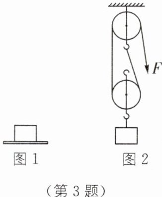 3. 中考新考法 提高滑轮组机械效率的建议开放性问题 (2024·绥化中考)如图1所示,质量为40kg的货物静止在水平地面上,与地面的接触面积是800$\rm cm^2$。如图2所示,工人用250N的拉力F,将货物用滑轮组匀速提升到3m高的二楼,此过程中货物上升的速度是0.2m/s。求: