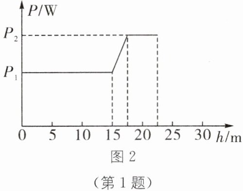 。(3)若货箱提升速度恒保持1m/s,出水后继续提升5m,图2表示整个过程中拉力的功率P和货箱匀速被提升的距离关系的坐标图,请补充图2中$P_1和P_2$的数值:$P_1= $______