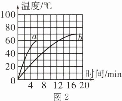 (3)小金选用了相同质量的燃料a和燃料b进行实验。当燃料燃尽后,小金根据各个时刻烧杯中的水温,绘制了如图2所示的图像,则可初步判断燃料