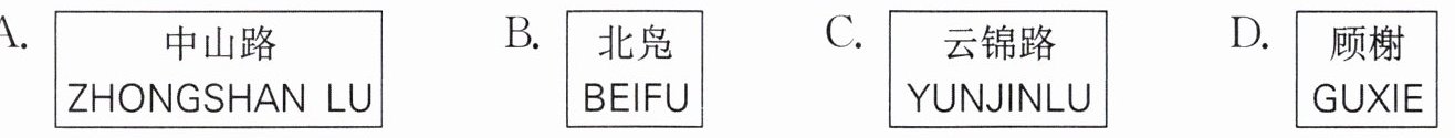 三、下列路牌中的地名拼音不符合拼写规则的一项是( )