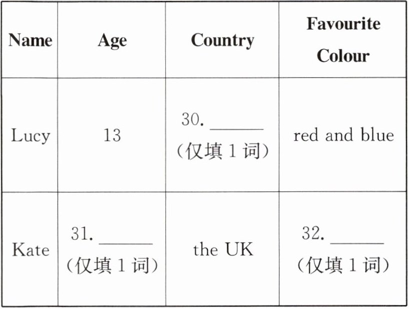 (不超过5词)30~32. Fill in the blanks(填表)according to the passage.