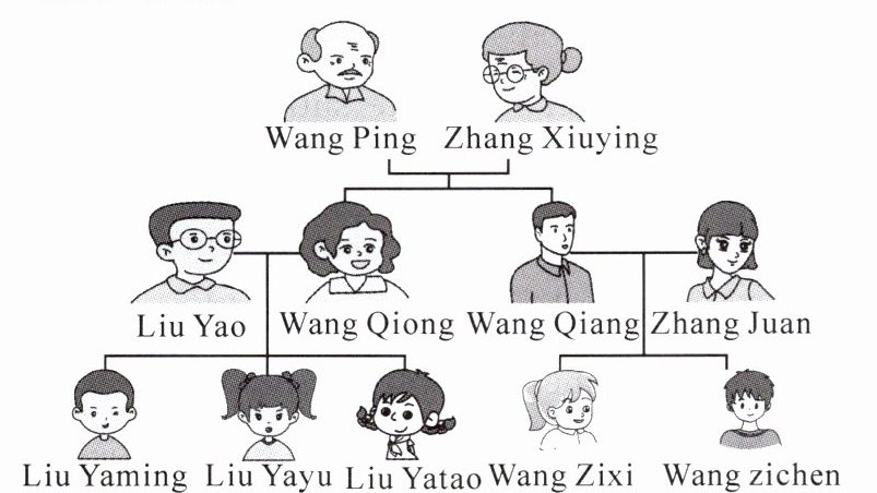 (一)根据刘亚桃的家谱图,完成下列各题。(每空一词)