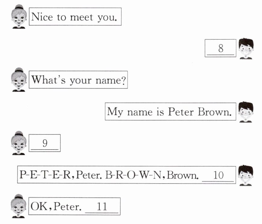 B: Of course. When we meet a new student at school in the 14, we often 15 each other. We may say "Good morning! 16 is your name?" or " May I 17 your name? Nice to meet 18." and then ask "19 are you?" This is a nice way to 20 a conversation.