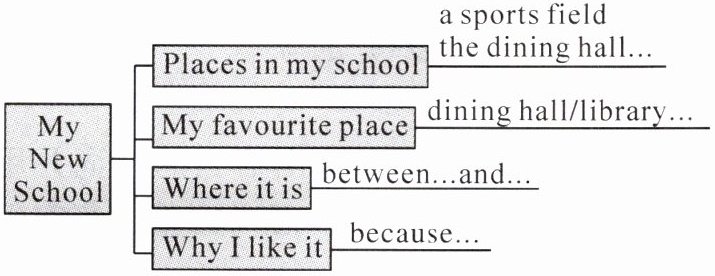 1. many interesting places 2. the teaching building 3. a sports field 4. a dining hall 5. between ... and ...