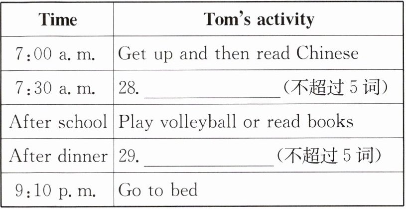 26. six 27. reporters 28. Have breakfast 29. Study Chinese