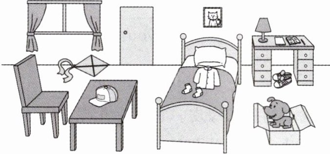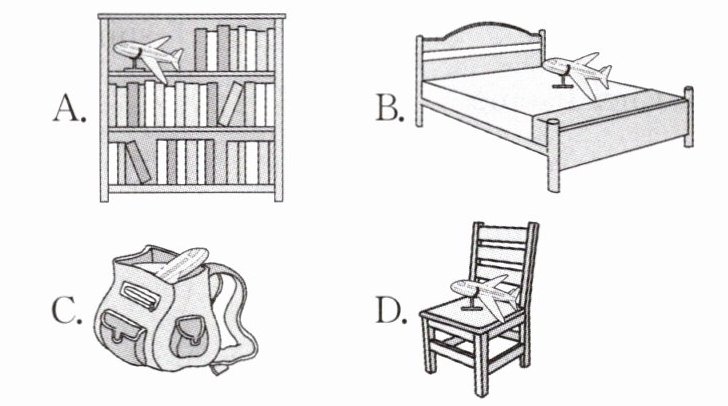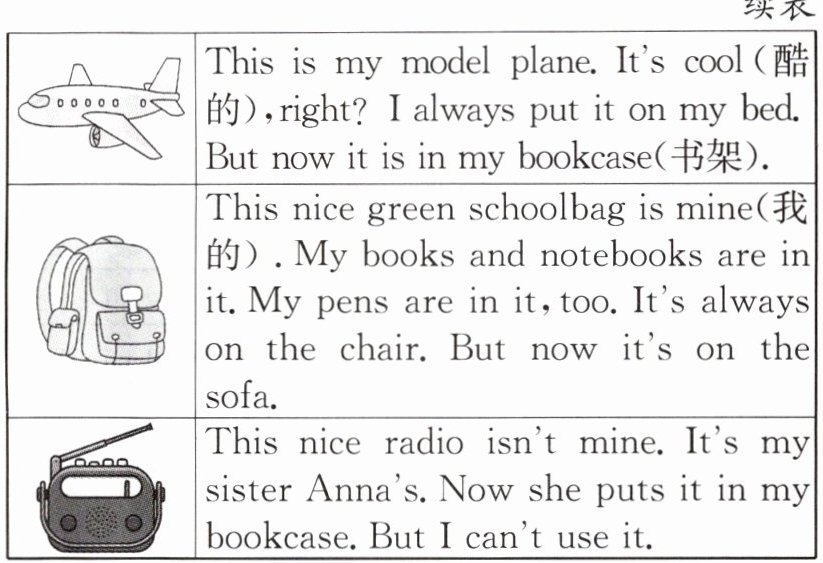 ①The radio. ②The schoolbag. ③The cap. ④The model plane.