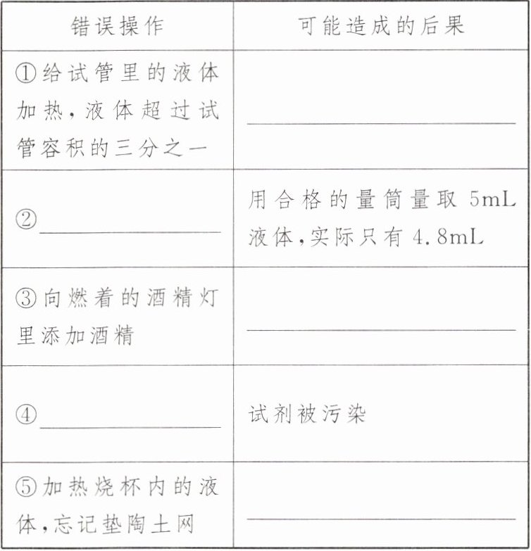 |用合格的量筒量取5mL液体,实际只有4.8mL||③向燃着的酒精灯里添加酒精|