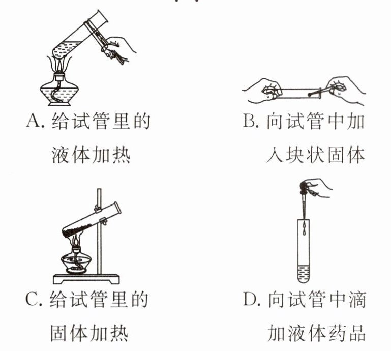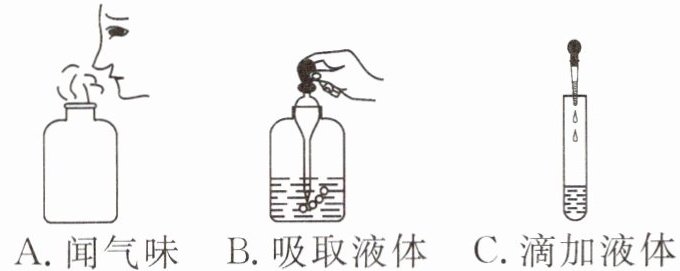 把鼻孔凑到容器口闻试剂气味 取液时挤入空气 将胶头滴管伸入试管内滴加液体