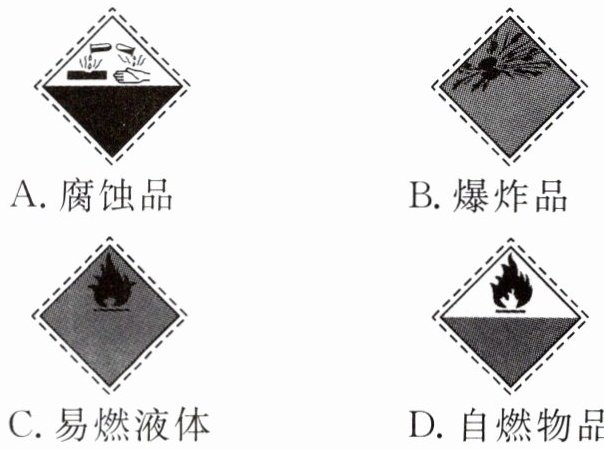 6.(2024·山西)为保护他人和自己的生命财产安全,运输危险化学品火药、汽油、浓硫酸等的车辆,必须使用重要的警示标志,其中在运输火药的车辆上应该张贴的是 (