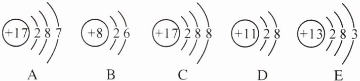种元素。(4)E失去3个电子,形成阳离子,该离子符号为