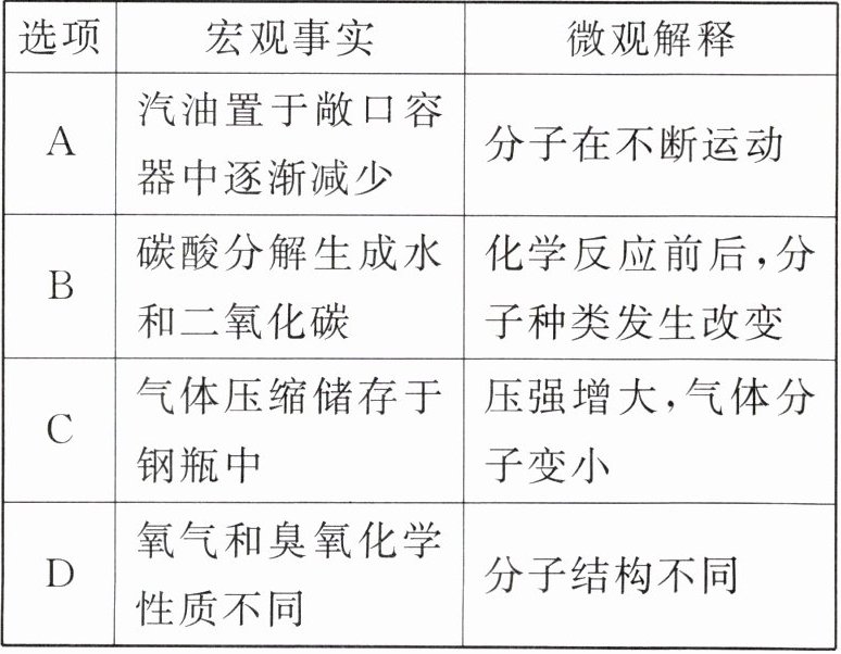 3.【科学思维】(2024·淄博)“宏微结合”是化学学科特有的思维方式。下列对宏观事实的微观解释错误的是(