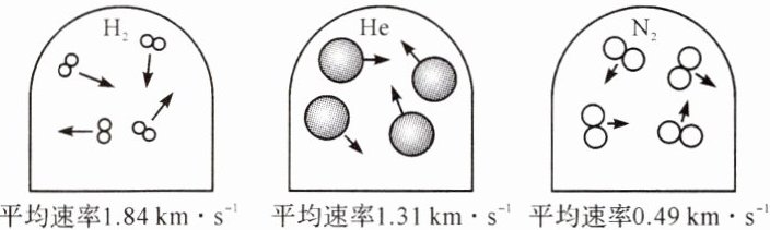(2)0℃时,氢气、氦气和氮气的分子运动示意图分别如下图所示。