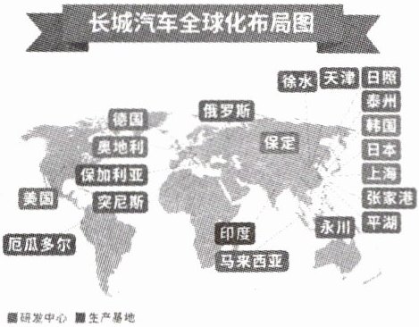 2. 如图所示,长城汽车在全球布局生产基地说明了( )