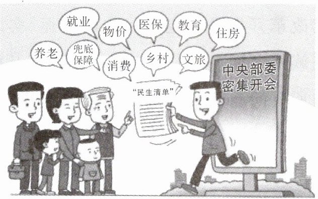 材料一 党的十八大以来,保障和改善民生始终贯穿在以习近平同志为核心的党中央治国理政的方方面面。政府工作报告指出,要尽力而为、量力而行,切实保障基本民生,推动解决重点民生问题,促进社会公平正义,让人民过上好日子。