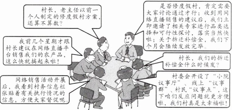 8. 冲刺A+听民意、汇民智,我国的人民民主不仅有完整的制度程序,而且有完整的参与实践。请你阅读漫画《村民议事会》,回答下列问题。