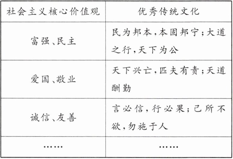 6. 下面是某同学在学习“构筑中国价值”这部分内容时制作的表格,他想表达的观点是( )