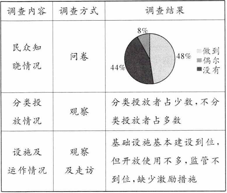 8. 仔细观察某市关于垃圾分类问卷调查表,联系所学知识,回答问题。