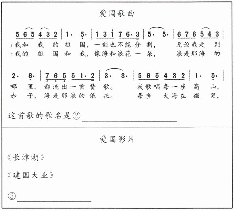 1 我和 我 的 祖国,一 刻 也 不能 分 割, 无 论我走 到