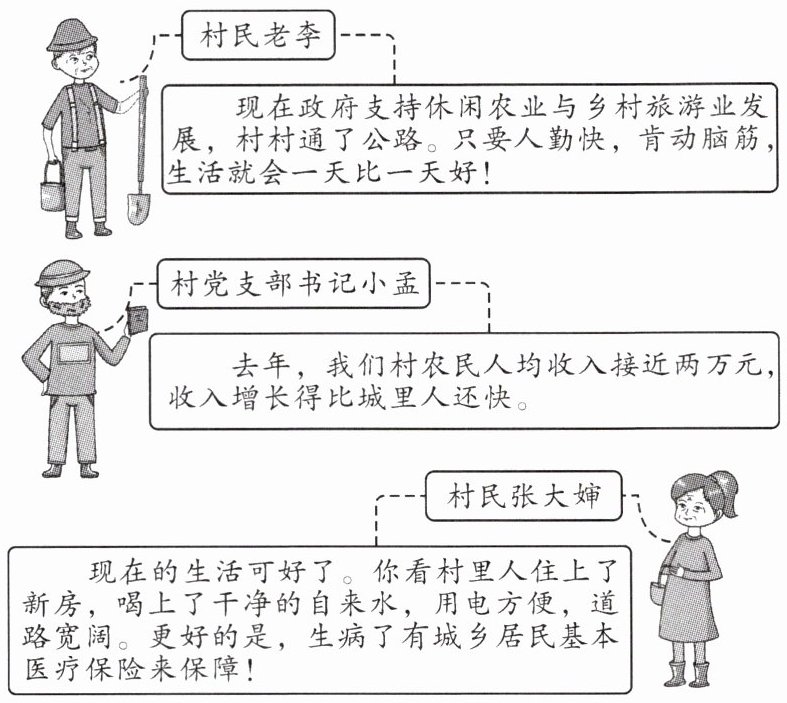 村民老李:现在政府支持休闲农业与乡村旅游业发展,村村通了公路。只要人勤快,肯动脑筋,生活就会一天比一天好!